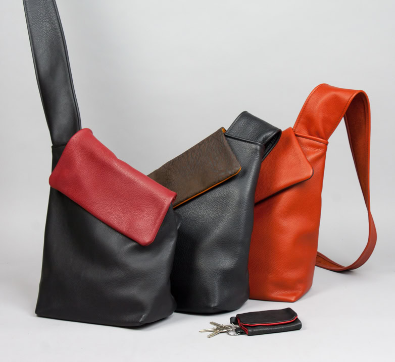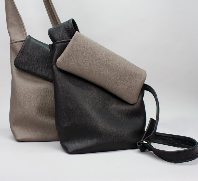 Umhängetasche - asymmetrisch geschnitten, Reißverschlussfach und Handyfach innen,