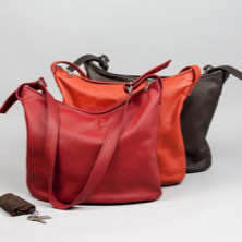 Shopper - verstellbarer Trageriemen, oben langer Reißverschluss, Innenfutter aus Leder, 2 Reißverschlussfächer innen, Handyfach, breiter, verstärkter Boden (oval)
