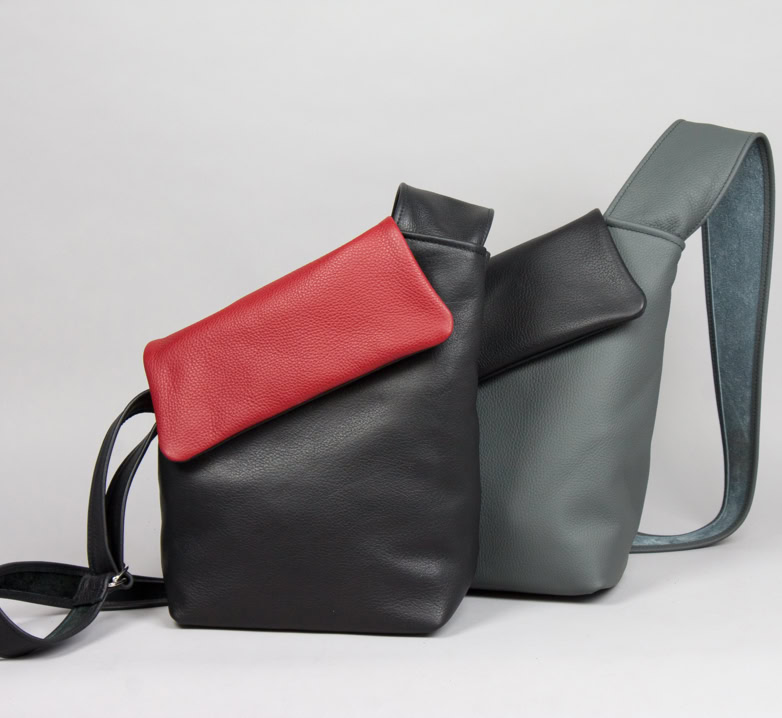 Umhängetasche - asymmetrisch geschnitten, Reißverschlussfach und Handyfach innen,