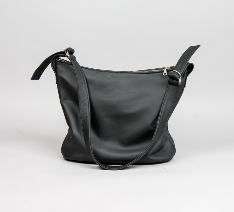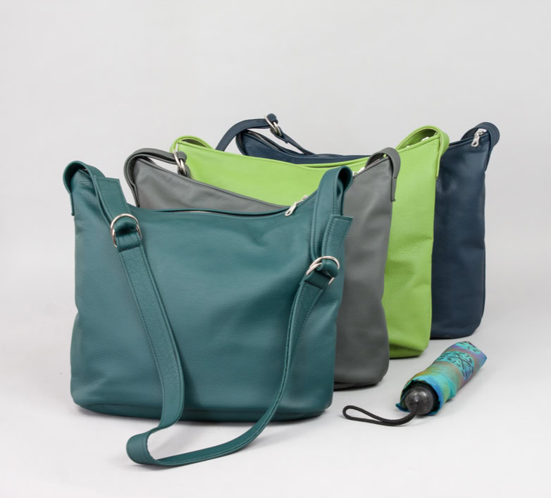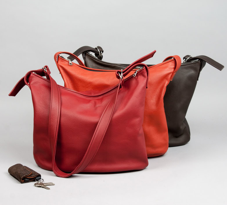 Shopper - verstellbarer Trageriemen, oben langer Reißverschluss, Innenfutter aus Leder, 2 Reißverschlussfächer innen, Handyfach, breiter, verstärkter Boden (oval)